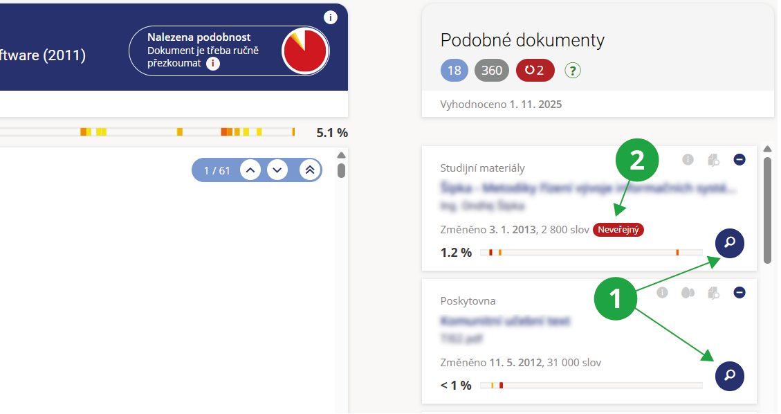 2 Návrat zpět k nalezeným podobnostem dokumentu.